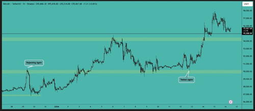 Bitcoin is holding above $95,000 and is making a move towards the $98,000 resistance area, as expected. The price was rejected in the first attempt, and we may see another move towards the resistance....