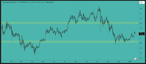 主要阻力区域:3.55 万亿美元至 3.65 万亿美元