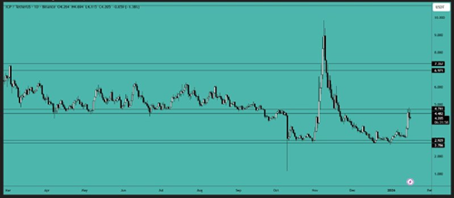 加密货币总市值突破了 3.2 万亿美元的局部阻力区域,目前正在重新测试该区域。我们可能会看到价格继续上涨,向下一个主要阻力区域迈进。
